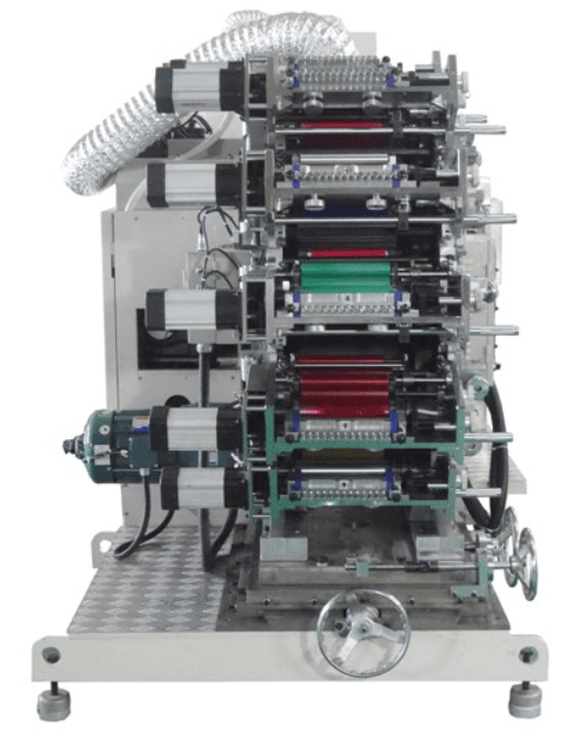 The machine is equipped with the DEX 14DF slicer from Taiwan, known for its precise sleeve cutting performance. The slicer ensures clean, burr-free edges on each tube, which is essential for seamless printing and later assembly processes. It is also integrated into the workflow in a way that supports automated feeding and uninterrupted production lines.